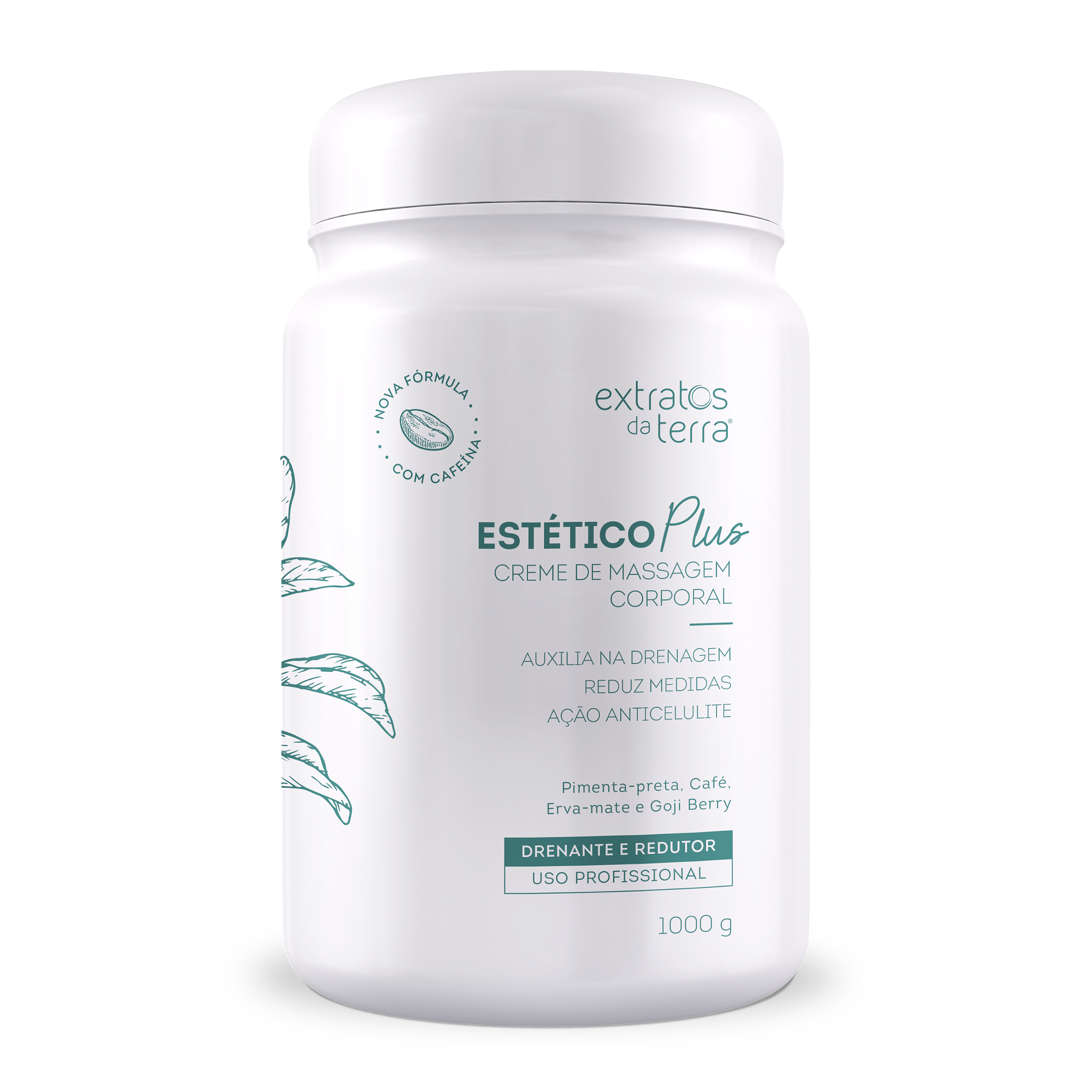 O novo Estético, além do complexo drenante constituído pelos extratos de pimenta-preta, erva-mate e goji berry, possui também o extrato de café, que auxilia na redução das células de gordura, na redução de medidas e no tratamento de celulites.